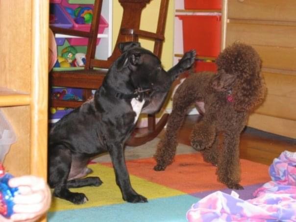 My mind went straight to doom and gloom. We already had a puppy, Coco. We also had two small children and a boa constrictor. This is crazy! I said, “You have to choose between the snake and the Pitbull. I will not have two things that can eat my children in this house!” Pitbulls are not often painted in a good light, and most stories I heard were not good. Lucky, had won Todd’s heart in a way that a red-tail boa never would. The next day Todd went to a pet store with the snake (I cannot remember the snake’s name) and got her rehomed. YES! I might like this dog after all.